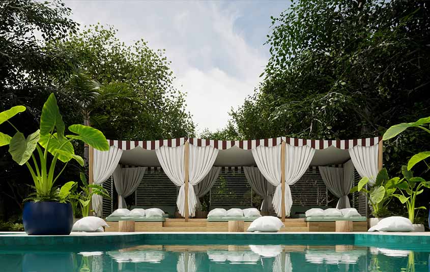 - Cabanas by the swimming pool