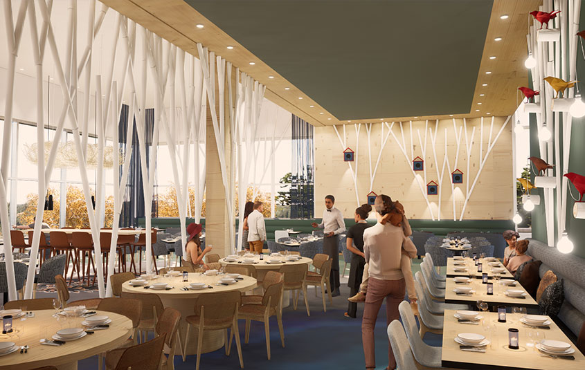 As for dining, the main restaurant, Le Marché, offers buffet-style dining in five dining rooms and two terraces. At Terroir & Co. the entire family can enjoy such regional delicacies as fondues, raclette and maple syrup served on snow for dessert. The gourmet lounge Le Chalet offers a cozy atmosphere with a menu that reinterprets local delicacies while the main bar, Le Météore, is a multi-use space at the heart of the resort, perfect for day to night entertainment and hosting.