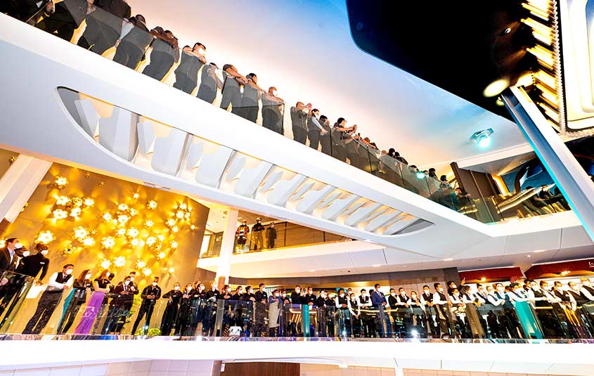 During an official ceremony at the Chantiers de l’Atlantique shipyard in Saint-Nazaire, France, Celebrity Cruises’ President and CEO Lisa Lutoff-Perlo was joined by Royal Caribbean Group’s President and CEO Jason Liberty and the ship’s captain, Kate McCue as they completed the traditional changing of the flags. The momentous occasion, which was attended by Beyond’s 1,400 crew members and shipyard officials, was particularly ******** was it marked the cruise industry’s first physical delivery ceremony since the start of the ********.