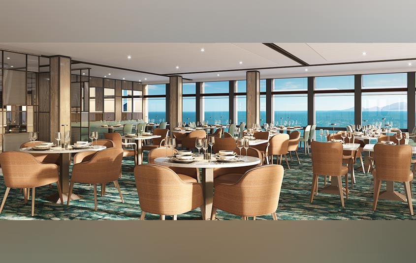The largest of Silver Nova’s restaurants, La Terrazza on deck 4, will seat 340 guests. Floor-to-ceiling windows will surround the restaurant’s interior space, offering panoramic views.
