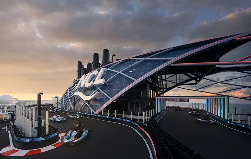 At 965 feet and with a capacity for 3,100 guests at double occupancy, Norwegian Prima is said to offer the highest space ratio of any contemporary or premium cruise ship. It boasts the largest variety of suite categories available at sea, as well as The Haven by Norwegian, NCL’s ultra-premium, keycard-only access ship-within-a-ship concept. Other top-selling points include The Rush and The Drop, the fastest slides at sea, the Prima Speedway, the first three-level racetrack at sea, as well as spaces like Ocean Boulevard, a 44,000 square-foot outdoor walkway, The Concourse, home to an outdoor sculpture garden, and Infinity Beach, featuring expansive pool decks and infinity-style pools.