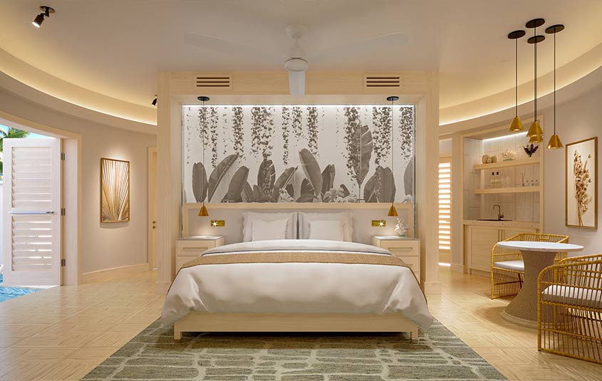 Mammee Bay Beachfront Butler Suites will be equipped with spacious balconies directly overlooking the ocean, with gold fixtures and green accents throughout the resort’s various accommodations for a ‘nature-meets-luxury’ effect.