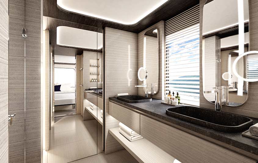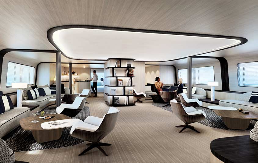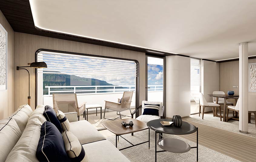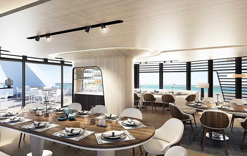 The intimate-sized vessel also features an outdoor bar, Le Diamont restaurant, a wellness space that offers Biologique Recherche treatments, daily yoga sessions on the deck, glass-bottomed kayaks, stand-up paddleboards, diving and snorkelling equipment and a saltwater pool.