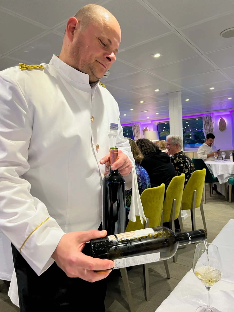 Back onboard the ship, there’s a ‘French guingette’ evening. For the occasion, the entire crew wears berets.