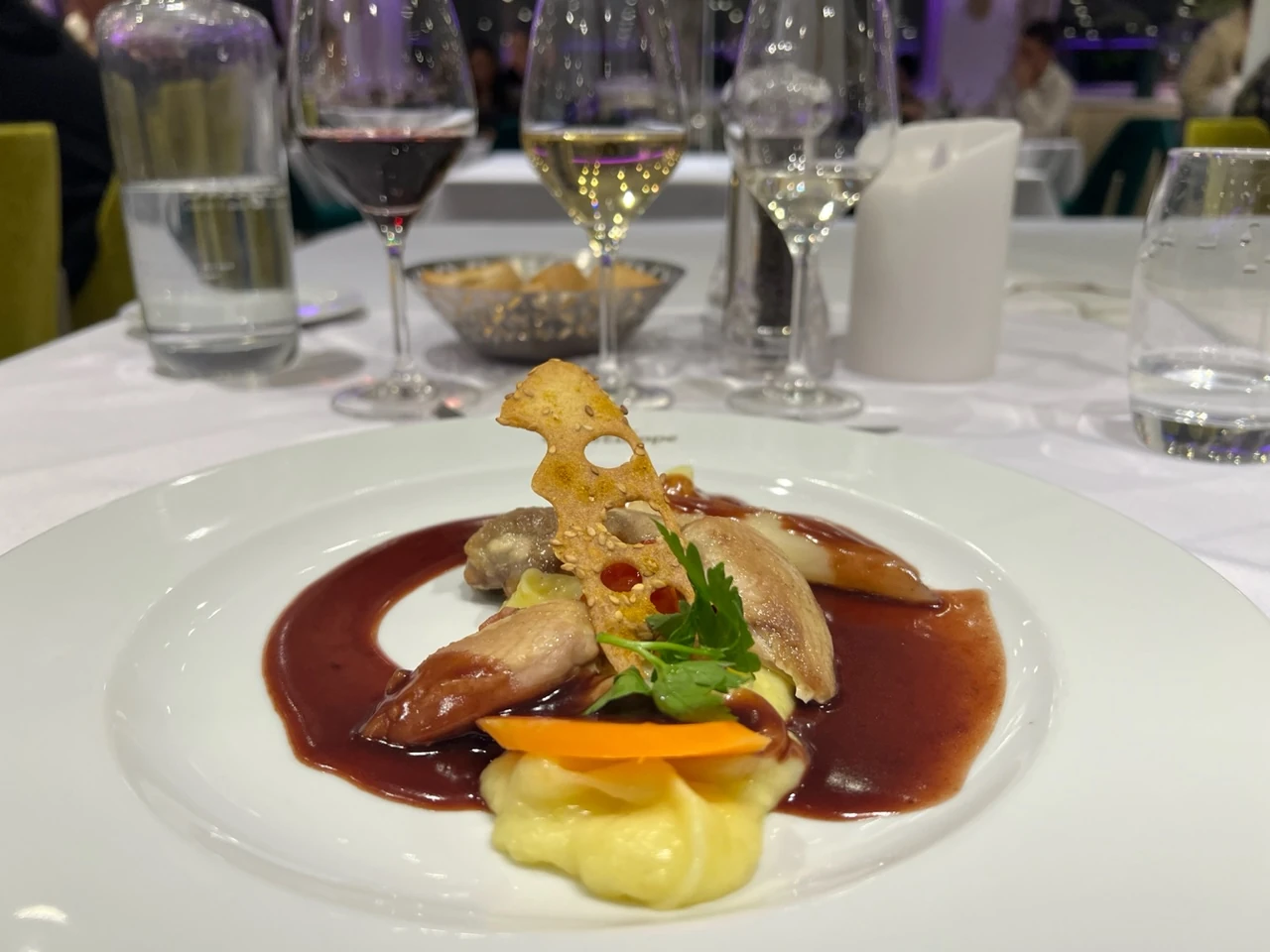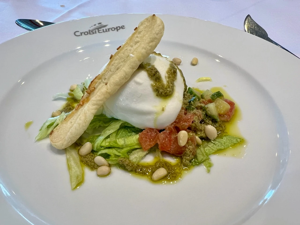 At lunchtime, there’s mozzarella di bufala and tomato tartare with pesto. We don’t always eat French cuisine on the Elbe Princess II, but we always eat well. This evening, delicious quail with red wine sauce will be served.