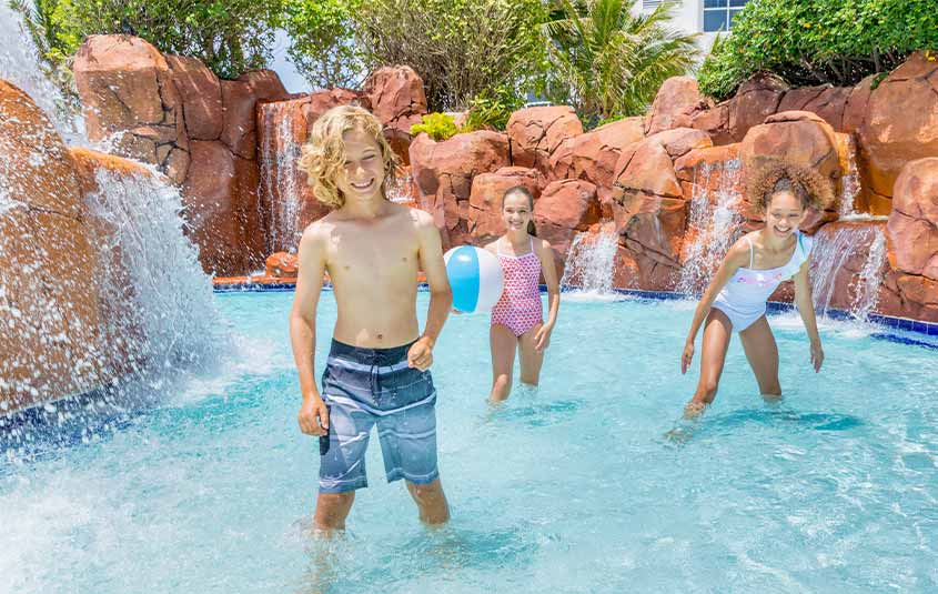 In addition to the warm, sunny weather, guests can enjoy a variety of entertainment and live music performed by local artists throughout the resort grounds. Other highlights include the resort’s grotto-style swimming pool and poolside cabanas, the full-service Aquanox Spa, and the Planet Kids program, where play is paired with purpose.