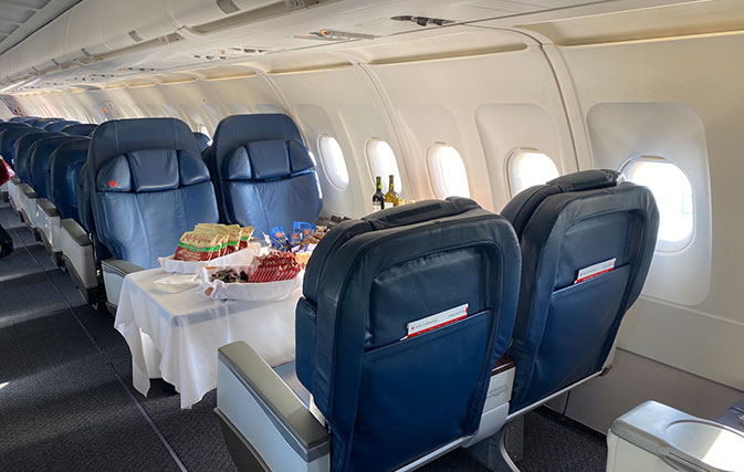 Onboard the Jetz aircraft, there are just 58 seats, all business class, with Chef Antonio Park-prepared meals, complimentary WiFi throughout and iPads. Jetz seats have a 42-49” seat pitch and there is one full row featuring four seats facing each other complete with tables inbetween, perfect for family and friends. All seats also come with *****-protected bedding for the comfort of evening flights.