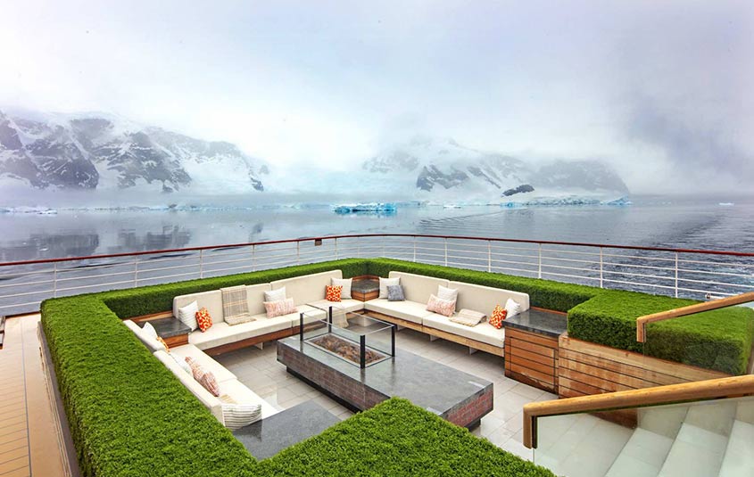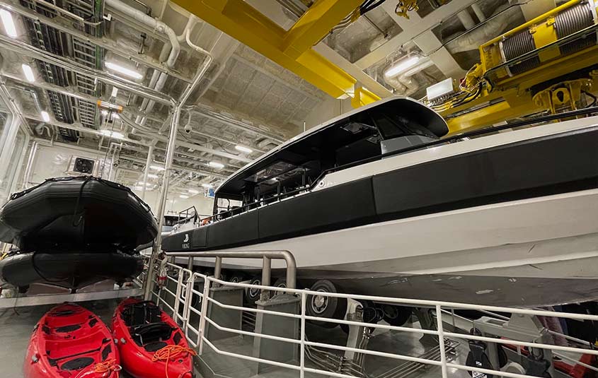 The Hangar, for example, houses a fleet of polar-tested kayaks, military-grade zodiacs, two 12-seater convertible Special Operations Boats (SOBs) and two six-guest submarines with 270-degree spherical windows. It also features an industry-first in-ship marina that makes it easy to embark and disembark while sheltered from the elements.